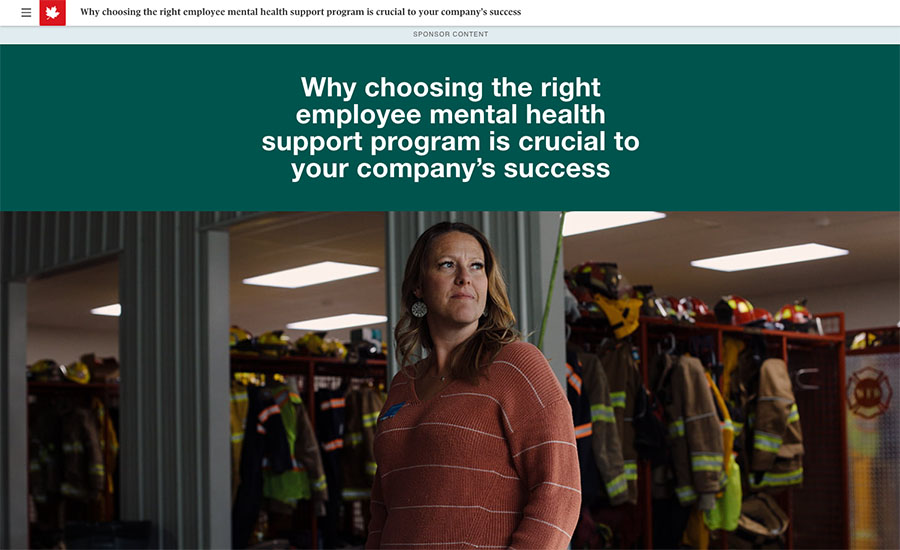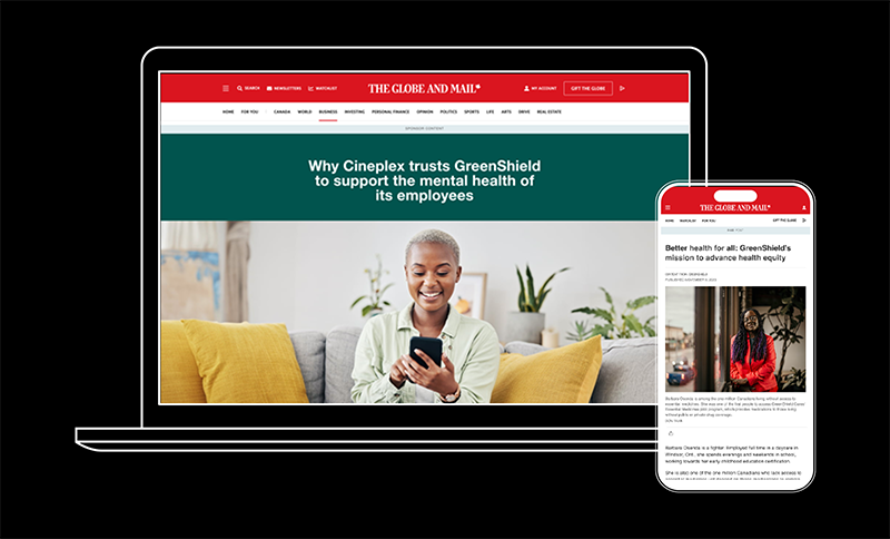 • Sponsor content and paid post: Three articles showcasing the urgent need for workplace mental health support, featuring GreenShield’s digital services and programs and an interview with CEO Zahid Salman, emphasizing the company’s innovative health solutions.